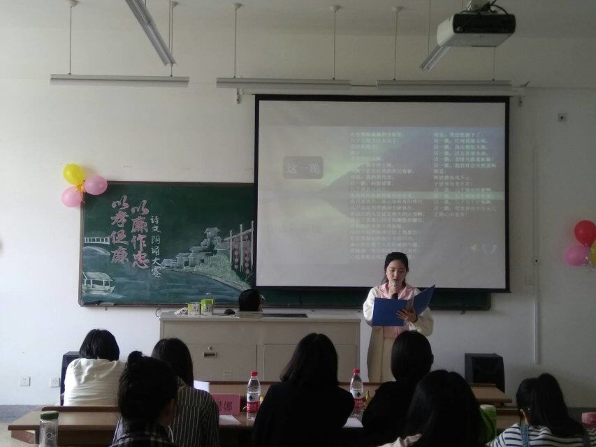 4月24日中午12:30,院第二届大学生文化艺术节活动之“以孝促廉·以廉作忠”诗文朗诵大赛初赛在外语楼309教室顺利举行。此次比赛由人文系自管会信息部和组织部联合承办。姚慧娜老师、人文系辅导员许婷婷老师以及院主持人团队代表宣甜甜同学担任了此次比赛的评委。本次比赛旨在进一步营造学院浓厚的文化氛围和气息,激发大学生对孝德文化的兴趣和爱好。