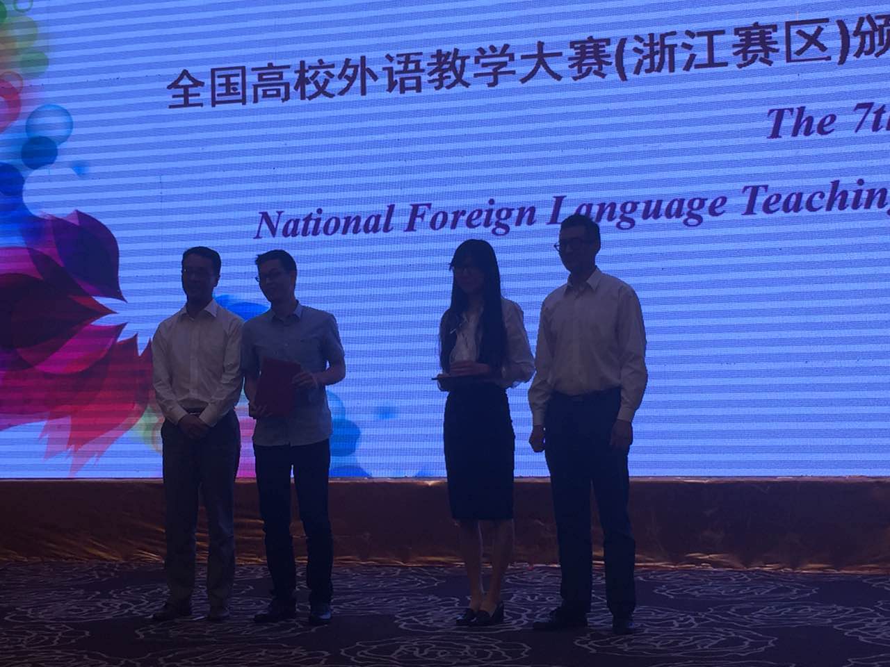 2016年5月18-20日,第七届“外教社杯”全国高校外语教学大赛(大学英语组)浙江赛区的复赛、决赛在衢州学院举行。来自浙江外国语学院、浙江工商大学等30多所省内本科高校共52名英语教师参加了比赛,我院外国语系教师王寅珊和吴彩霞分别获得本次比赛综合课组的特等奖和视听说课组的三等奖。其中王寅珊老师以总分第一名的成绩将代表浙江省参加全国31个省市的决赛和总决赛。