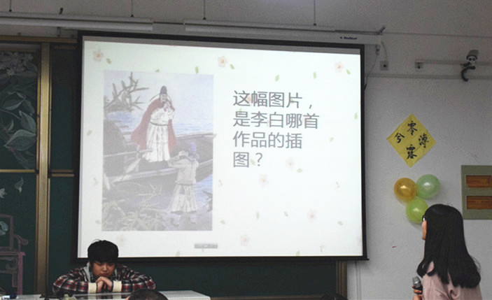 咏月吟风,风月无边迷人眼。锵金鸣玉,金玉满堂自生光。4月5日晚18:30,我系“锵金鸣玉,咏月吟风”诗词大会决赛在3-303拉开帷幕,本次活动由我系团总支学生会新闻中心和组织部联合承办。我系刘金荣老师、陈雪峰老师、马芹芬老师担任大会的嘉宾,我系团总支学生会副主席石家怡、刘文钰两位学姐也共同出席。