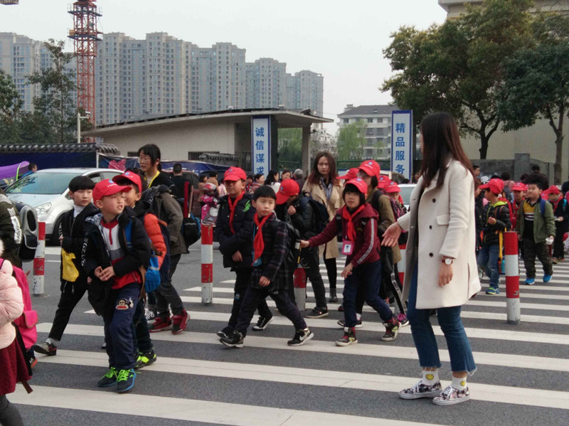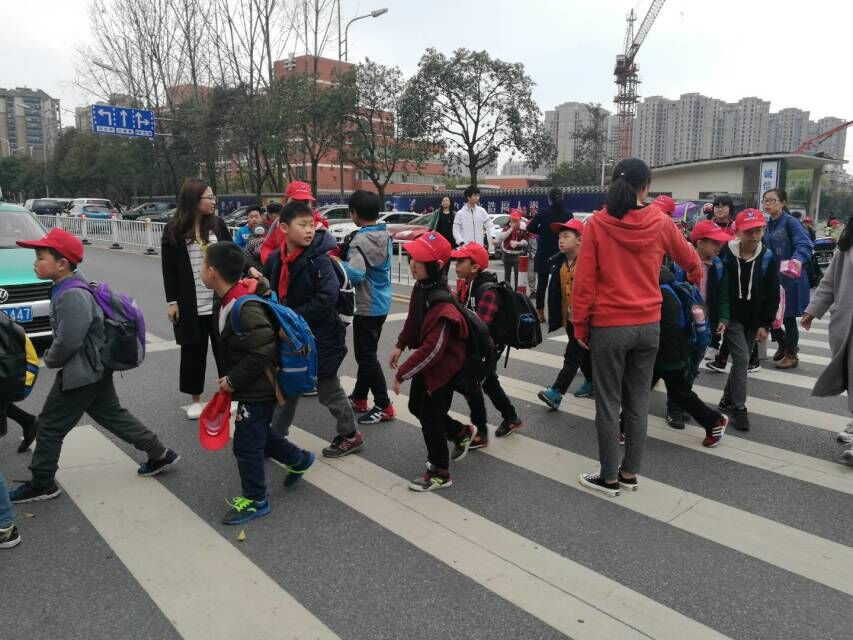 此次活动将活动成员分为五组,每天都有一组前往轻纺城小学,在学校正门以及东西两侧的十字路口,引导并护送小学生安全过马路。每天下午3:30,轻纺城小学门口,我们的志愿者们相互配合,对放学的小学生进行交通引导,确保他们的安全,并且耐心向他们讲解看到车辆来往该如何避免,看到红绿灯时要做到“一停二看三通过”,以此培养他们的交通安全意识。随后,四至六年级的学生也依次走出校门,虽然他们已经初步学习了交通安全规则,也能耐心等待红绿灯,不乱穿马路,但由于人流量和车流量的增多,道路变得十分拥挤,此时的志愿者们依然毫不懈怠,各司其职,在每个路口细心引导,以确保学生们的安全。