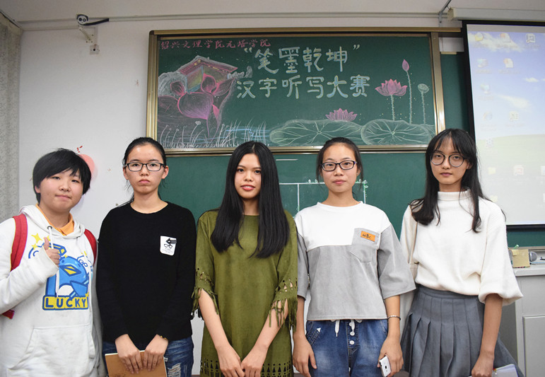 统分期间,我系汉语言文学教研室主任刘金荣老师为本次比赛作了简短的总结,刘老师认为:本次比赛的举办,有利于激发广大学子对中国传统优秀文化浓厚的学习兴趣,能够培养学生规范写汉字的意识,提高学生书写汉字的水平。随后比赛结果正式公布:吴思程同学荣获一等奖,林雨蒙同学获得二等奖,龚茜同学位居第三,获得三等奖。于成冠、王芷馨、沈杰、王婷婷、吴雅琪五位同学获得优胜奖,刘金荣老师、马芹芬老师、团总支副书记胡芳慧、学生会主席苏杭和副主席石家怡分别为获奖选手颁奖。在热烈的掌声中,“笔墨乾坤”汉字听写大赛圆满结束,让我们对获奖同学致以最诚挚的祝贺。