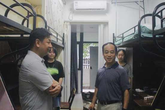 在走访期间,朱磊认真询问了新生到校后的身心状况以及在学习、生活方面所遇到的难题,并给出了许多充斥着暖意与关怀的建议。责任区辅导员宣页沁在与新生融洽的交谈中更为深入地了解了新生的宿舍生活情况,确保新生尽快适应新环境、新生活。