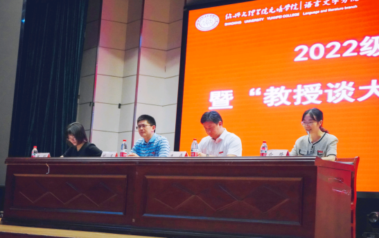 9月16日晚,分院在国际文化交流中心报告厅召开了2022级新生见面会暨“教授谈大学”新生始业教育第一课。分院党总支书记朱磊、分院副院长刘义、相关教研室负责人出席活动,全体辅导员、新生班班主任以及22级全体新生参加本次会议。会议第一阶段由分院副书记俞路主持。