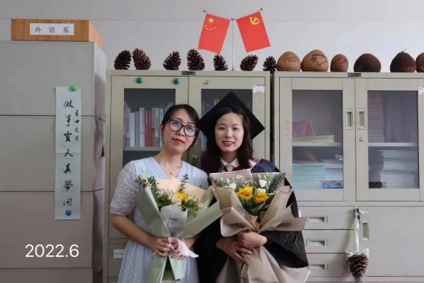 “曾经在外语系只有我一个人的时候,和学生要对接很多的工作,比如毕业资格排查、课程重修报名、等级考试报名等等。那个时候接触了许多学生,磨练出工作的耐心和细心。”她是一个外向、乐观、积极的人,说起话来语气温柔而坚定,常年的案头工作虽让她浸润了些许沉稳,却也没带走她曾经的朝气。