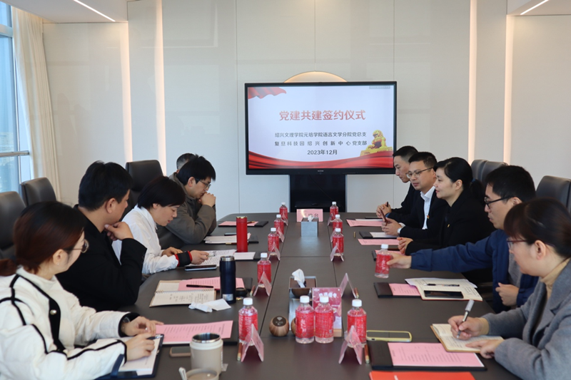 12月14日上午,语言文学分院与复旦科技园绍兴创新中心在复旦科技园举行党建共建签约仪式。学院党委副书记、纪委书记俞国芬,越城区人社局党组成员、人力资源服务中心主任茹佳佳,迪荡街道党工委组织委员张晓良,复旦科技园绍兴创新中心党支部书记朱国芳,以及双方相关部门负责人参加仪式。