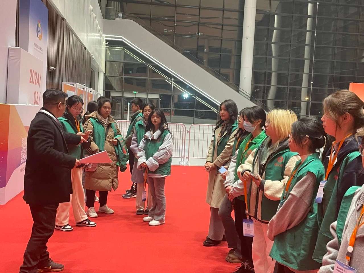 第十三届绍兴柯桥中国轻纺城窗帘布艺展览会将于3月14—3月17日在绍兴国际会展中心(新馆)举办。语言文学分院积极推进“劳动教育+志愿服务”的育人模式,经过前期宣传、班级报名、面试选拔等流程,共选派57位志愿者参与布艺展会。他们积极开展志愿工作,为参观者提供周到细致的服务,用志愿行动诠释着新时代青年的劳动使命与责任担当。