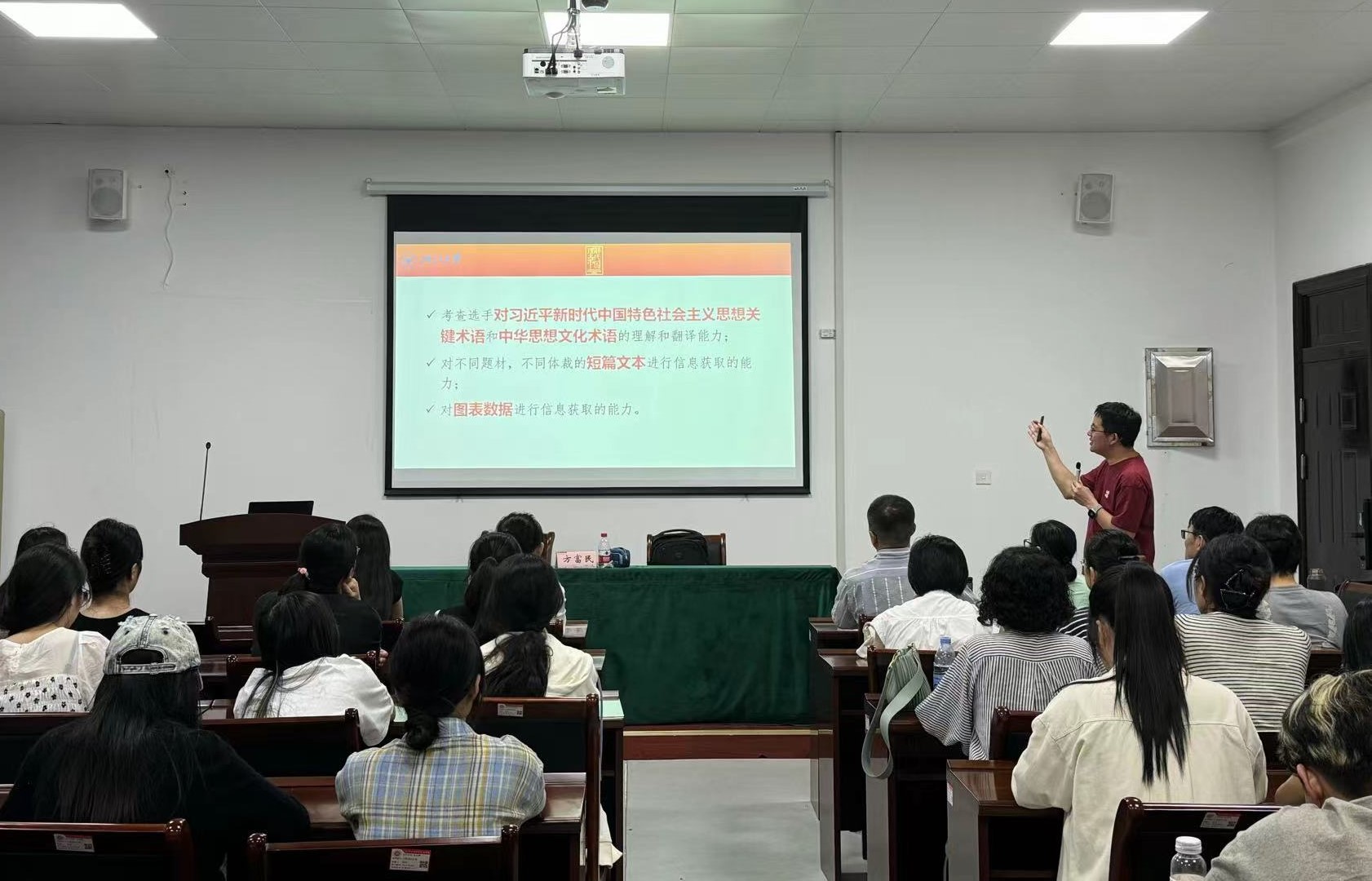 此外,方富民副教授还着重强调了词汇量的重要性。他认为,“丰富的词汇量是提高阅读理解能力的基础,也是提升英语综合素质的关键。”为此,他向同学们推荐了多种针对性训练方法,帮助同学们在比赛中更好地发挥自己的实力。方老师平易近人的风格、深入浅出的讲解和幽默风趣的语言引得在场师生的阵阵掌声。