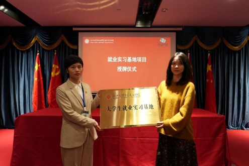宣页沁将“就业实习基地”牌匾授予黄丽君