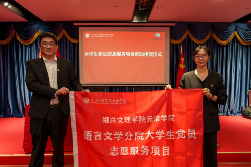 俞路将大学生党员志愿服务项目旗帜授予胡斌