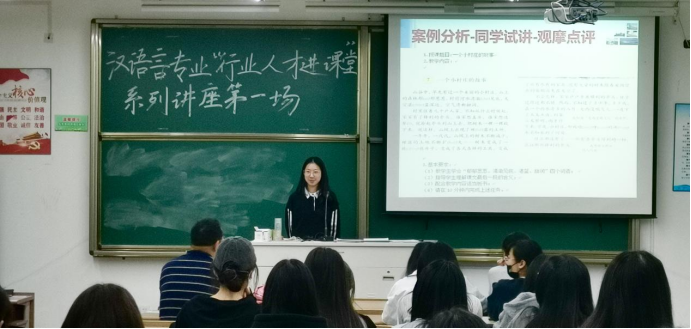 为传授小学语文教师面试的经验,解决学生相关方面的疑惑,增加同学们通过考试的自信,4月13日晚上18时30分,语言文学分院在4-201举行了“行业人才进课堂”专题讲座。讲座由刘金荣老师主持,绍兴文理学院硕导闫瑞祥老师受邀参加。分院的众多学子到场学习。