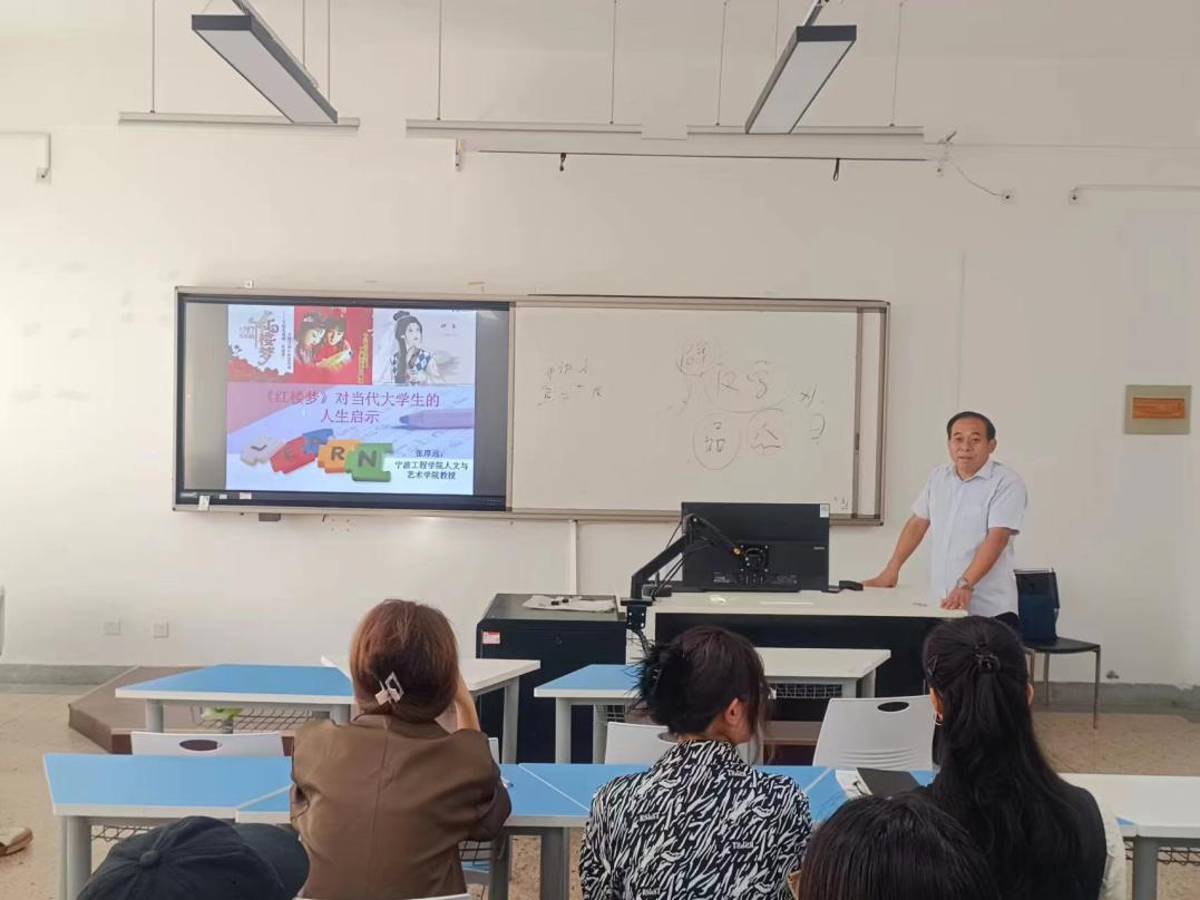 讲座过程中,张教授本别与同学们分享了这样几个话题:曹雪芹跌宕起伏的家世经历、高尚的人格精神,《红楼梦》的海内外传播情况和举世公认文学名著的事实,小说中众多优秀女性的悲苦命运,《红楼梦》对世人的警醒价值。