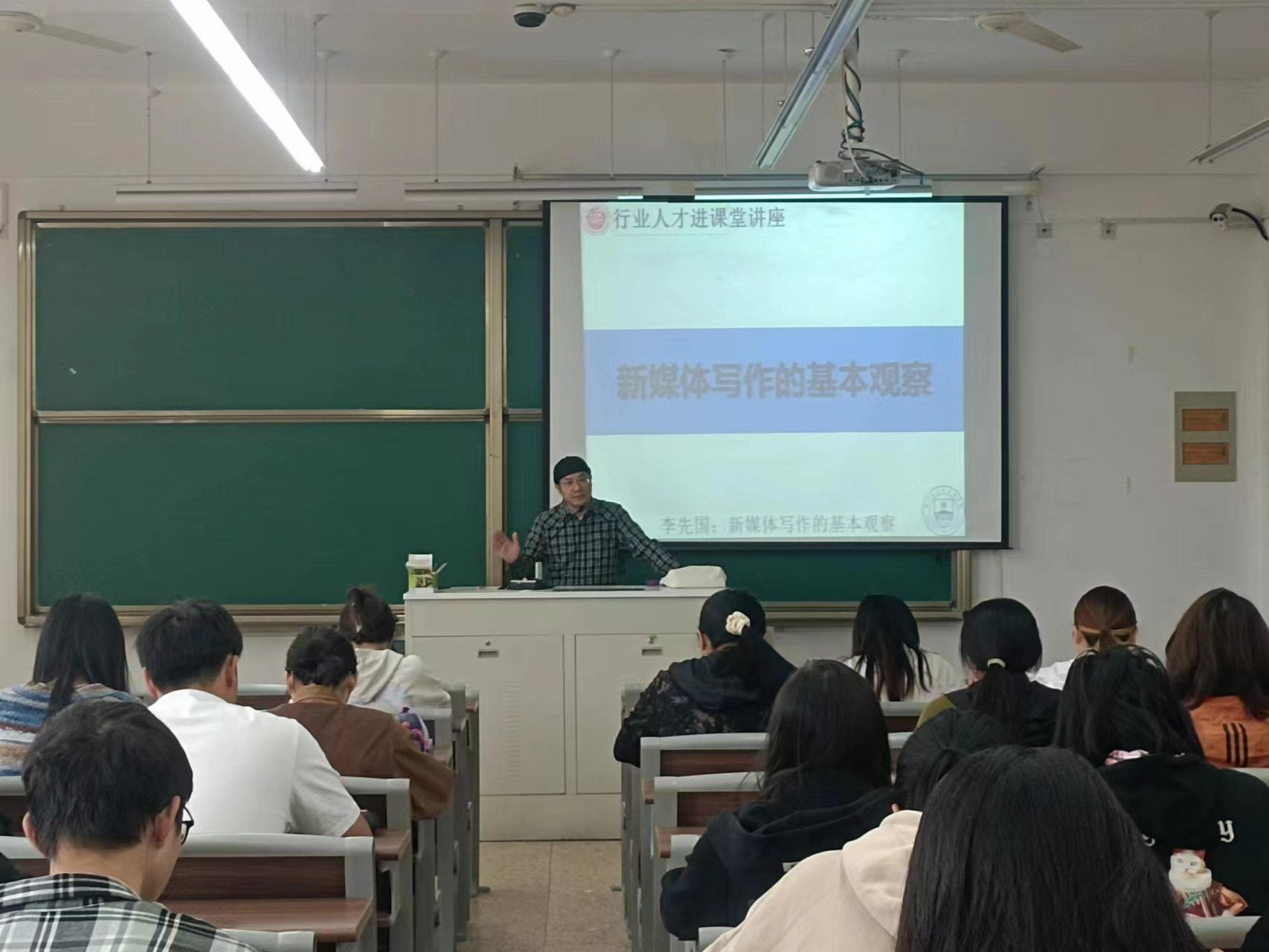11月6日上午,语言文学分院于教学楼3-306举行“行业人才进课堂”专题讲座活动。本次讲座由分院孟念珩老师主持,邀请浙江越秀外国语学院教授李先国作“新媒体写作的基本观察”的演讲,分院众多学子积极参加。