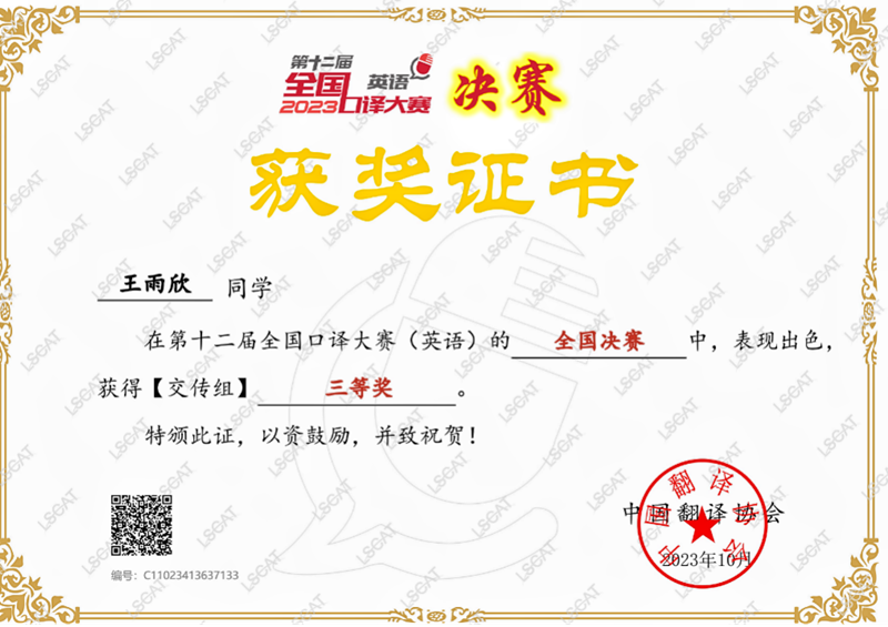 近日,语言文学分院积极组织学生踊跃参加第十二届全国口译大赛(英语)浙江赛区复赛,经过激烈比拼, 翻译专业梁振岳荣获一等奖,英语专业张思怡、王雨欣荣获二等奖,英语专业金高丹等5位同学荣获三等奖。其中,王雨欣顺利晋级全国口译大赛(英语)决赛并喜获三等奖。