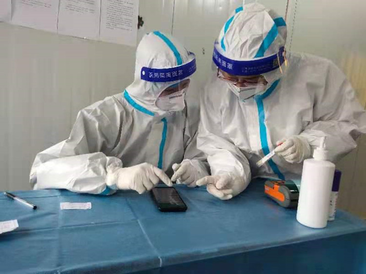 我院张宸同学(图左)疫情期间参与当地卫生服务中心核酸检测志愿服务工作