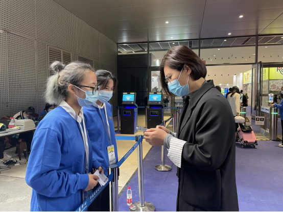 本次纺博会志愿活动分为“门禁”“闸机”“服务台”“二维码扫码”四个岗位,志愿者们各司其职,配合默契。门禁人员顶着寒风站在门口引导参展人员进行注册;闸机人员为参展人员扫描二维码或者身份证,是进入会展的“最后一关”;服务台人员较为灵活,为走不了闸机通道的人员或者使用特殊证件的外籍人员解决入场问题;二维码扫描人员则指导没有在门禁处进行注册的人员进行注册。四大岗位工作相互独立又密不可分,共同维持着纺博会的入场秩序。