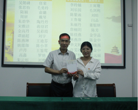 会上,教工第二党支部书记与学生第三党支部书记签订支部共建协议,教师党员与学生党员签订结对卡。教工支部书记作“师生联动,携手共进”主题微党课。会议还举行了第三十一期预备党员入党仪式,教工支部书记为预备党员佩戴党徽,全体预备党员宣读入党誓词,解读 “承诺践诺·岗位争先”细则,签订志愿服务卡等。