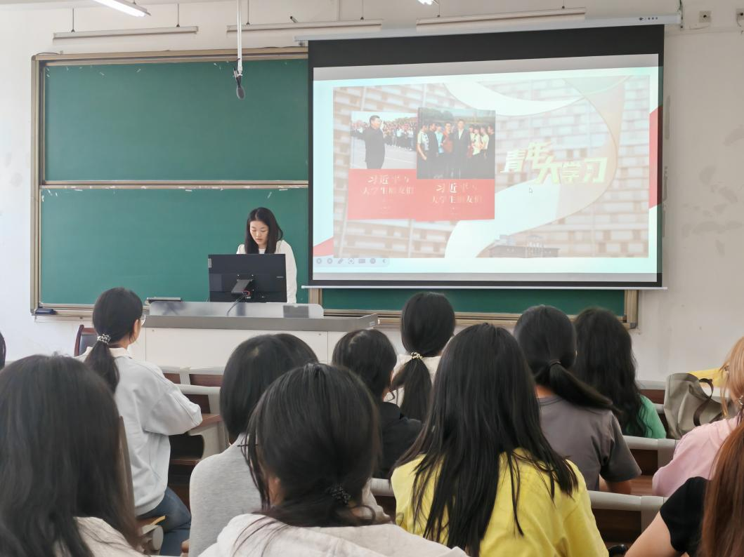 仪式后全体人员共同观看主题微团课《树立远大理想》,共唱团歌《光荣啊,中国共青团》,承诺以奋斗姿态激扬青春,不负时代、不负华年。