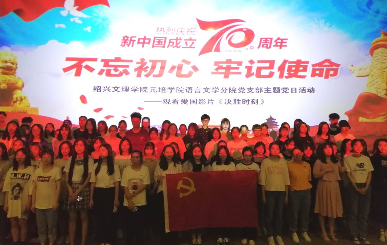 9月28日18:30,为热烈庆祝祖国七十周年诞辰,语言文学分院党支部组织一次“观红色电影,树爱国情怀”的主题党日活动,在党总支书记潘成刚的带领下,分院学生党员和预备党员于鲁迅电影院观看爱国影片《决战时刻》。