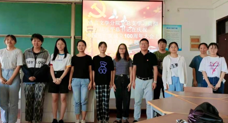 百年征程波澜壮阔,百年初心历久弥坚。7月11日,语言文学分院学生党员学习“习近平总书记‘七一’重要讲话”活动在4-404举行,会议由分院党总支书记潘成刚主持,各学生支部党员代表出席,并分享学习心得。