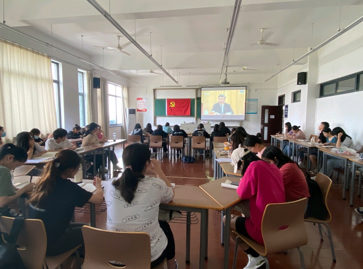 语言文学分院通过各种形式收听收看纪念辛亥革命110周年大会现场直播。分院党员活动室、办公室、教室、学生寝室等,处处都可见师生们认真聆听学习的身影。分院负责人带领教职工与学生党员们一起认真学习领会习近平总书记的重要讲话精神,大家全神贯注,边看边做笔记,会场秩序庄严肃静。