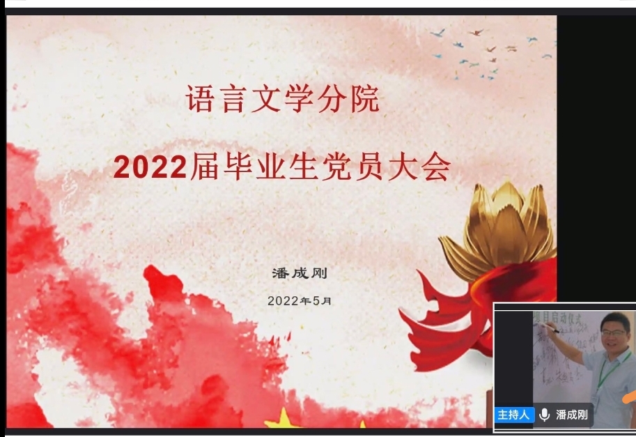 为了帮助毕业生党员更好地服务社会,完成组织关系与党员档案的转接工作,5月11日19:30,语言文学分院召开了“2020届毕业生党员大会”。会议由语言文学分院党总支书记潘成刚主持,各支部书记与2022届全体毕业生党员出席。