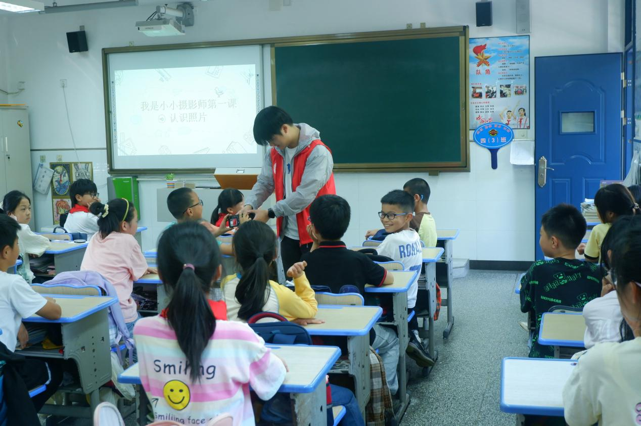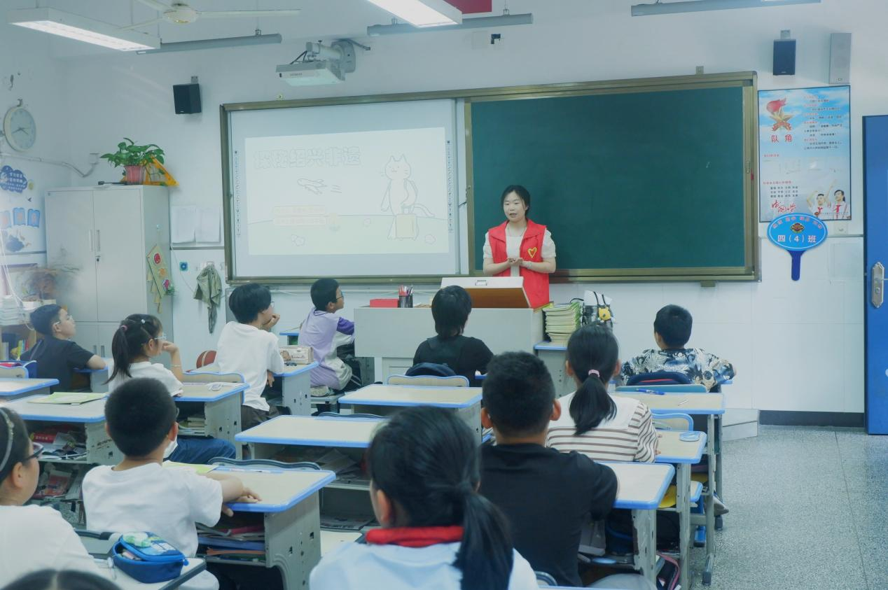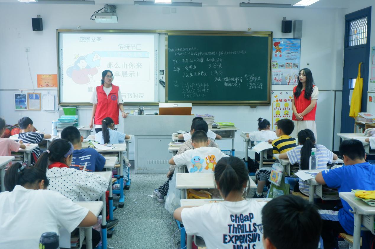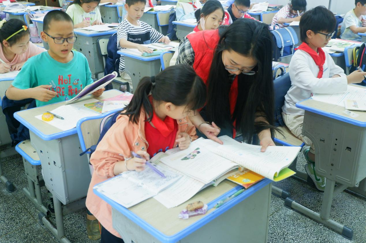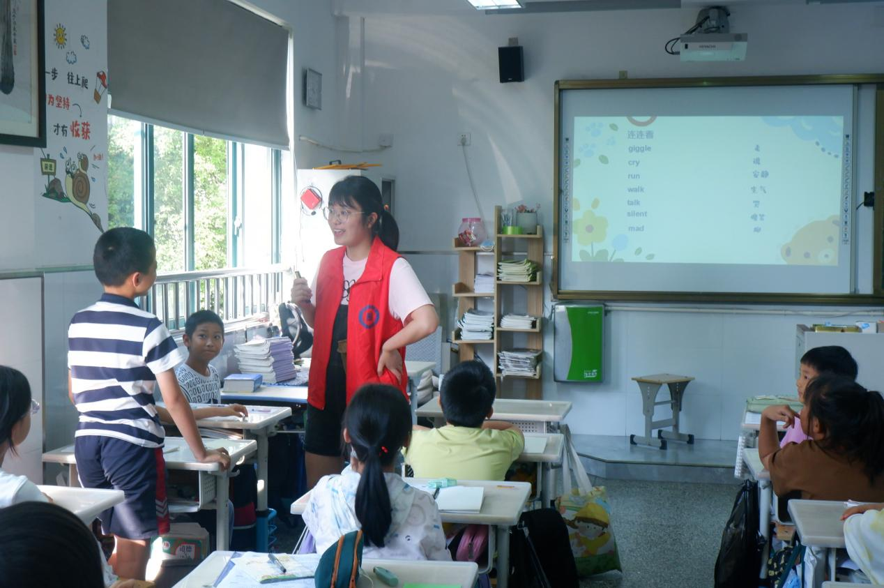 卜欢等6名志愿者,分别担任四年级六个班级的助教,协助老师们开展班级管理、处理学生事务以及参与课后服务等工作,为小学生答疑解惑,提供切实的帮助。