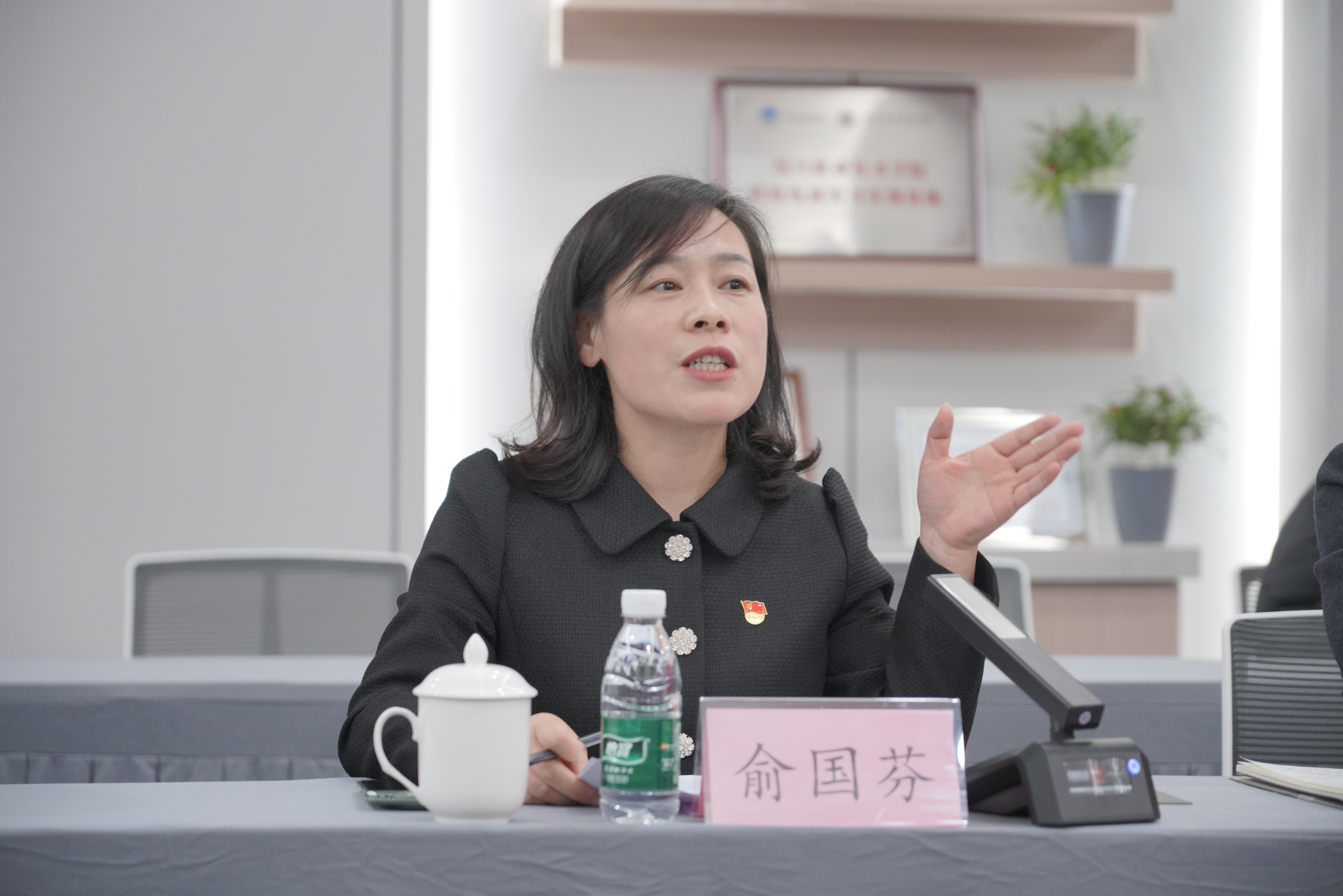 俞国芬在致辞中深入阐述语言文学分院特色优势,希望党建共建合作双方进一步深化交流,携手共进,共同谋划发展蓝图;以品牌建设为引领,汇聚发展合力,深入推进产教融合、科教融通;加强人才共建,推动 “试点工作” 做深、做实、做细、做亮。
