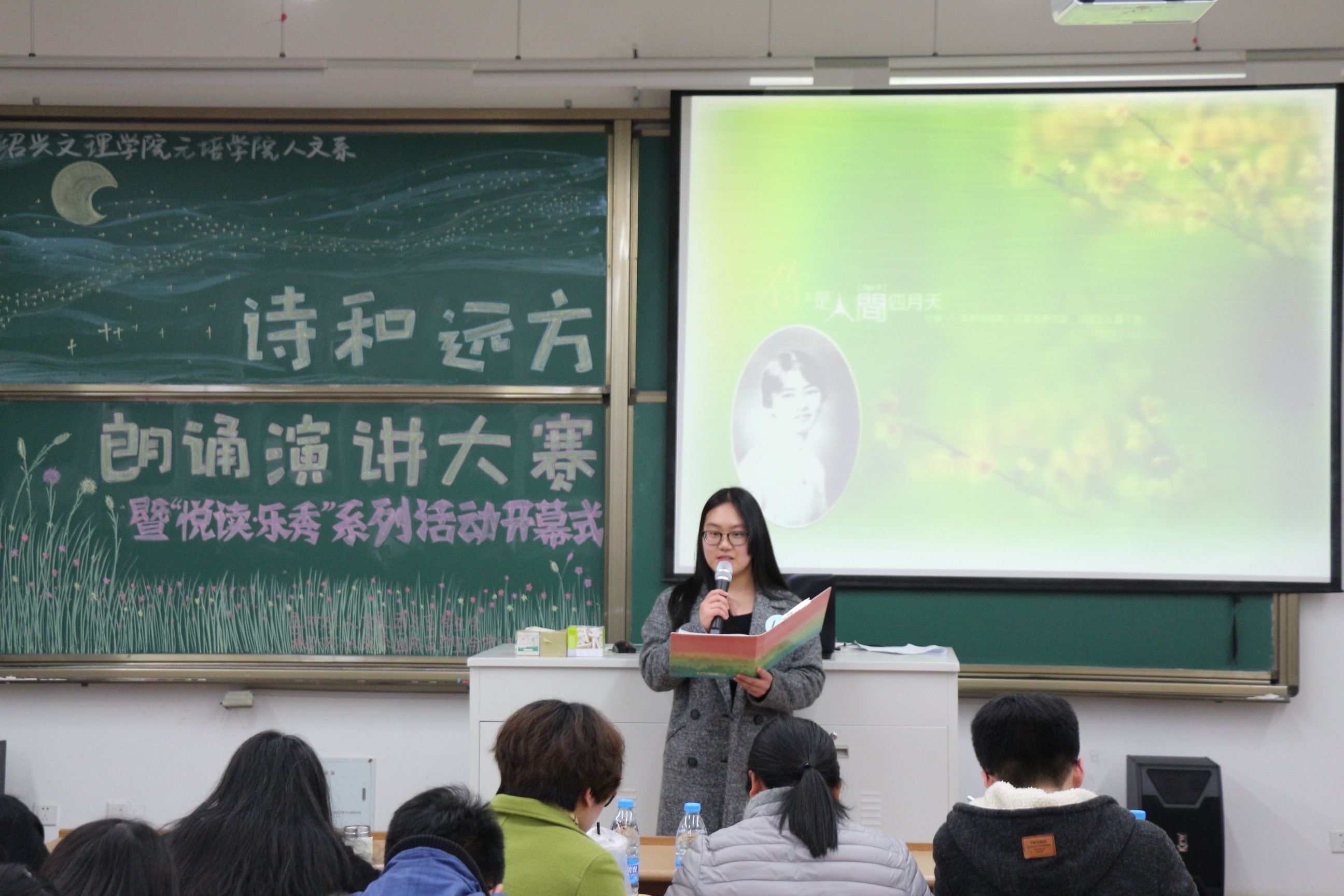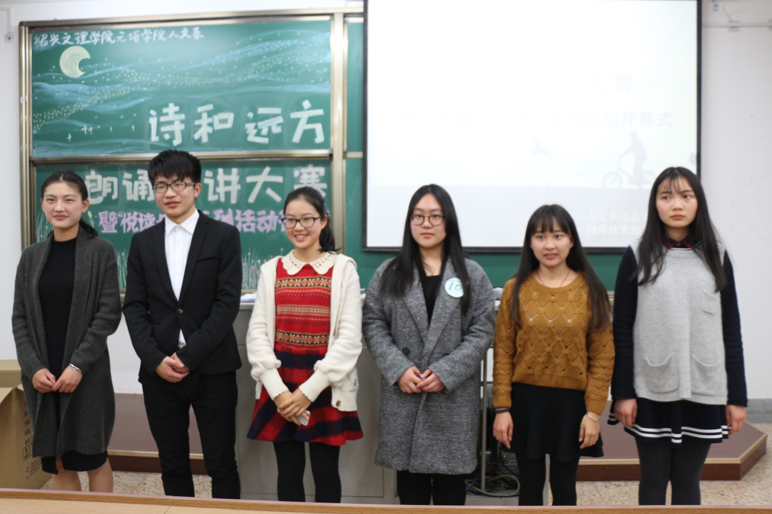 经过3月9日、10日的初赛中45组选手激烈地角逐,3月16日晚6:30于人文楼203教室,由我系宣传部和网络技术部承办的“诗和远方”诗歌朗诵演讲大赛决赛正式拉开帷幕。晋级的10组选手都在这场比赛中全力展现自己,一决高下。我系陈利老师、孟念珩老师、马芹芬老师和上届演讲朗诵大赛优秀选手钱佳诚担任评委。