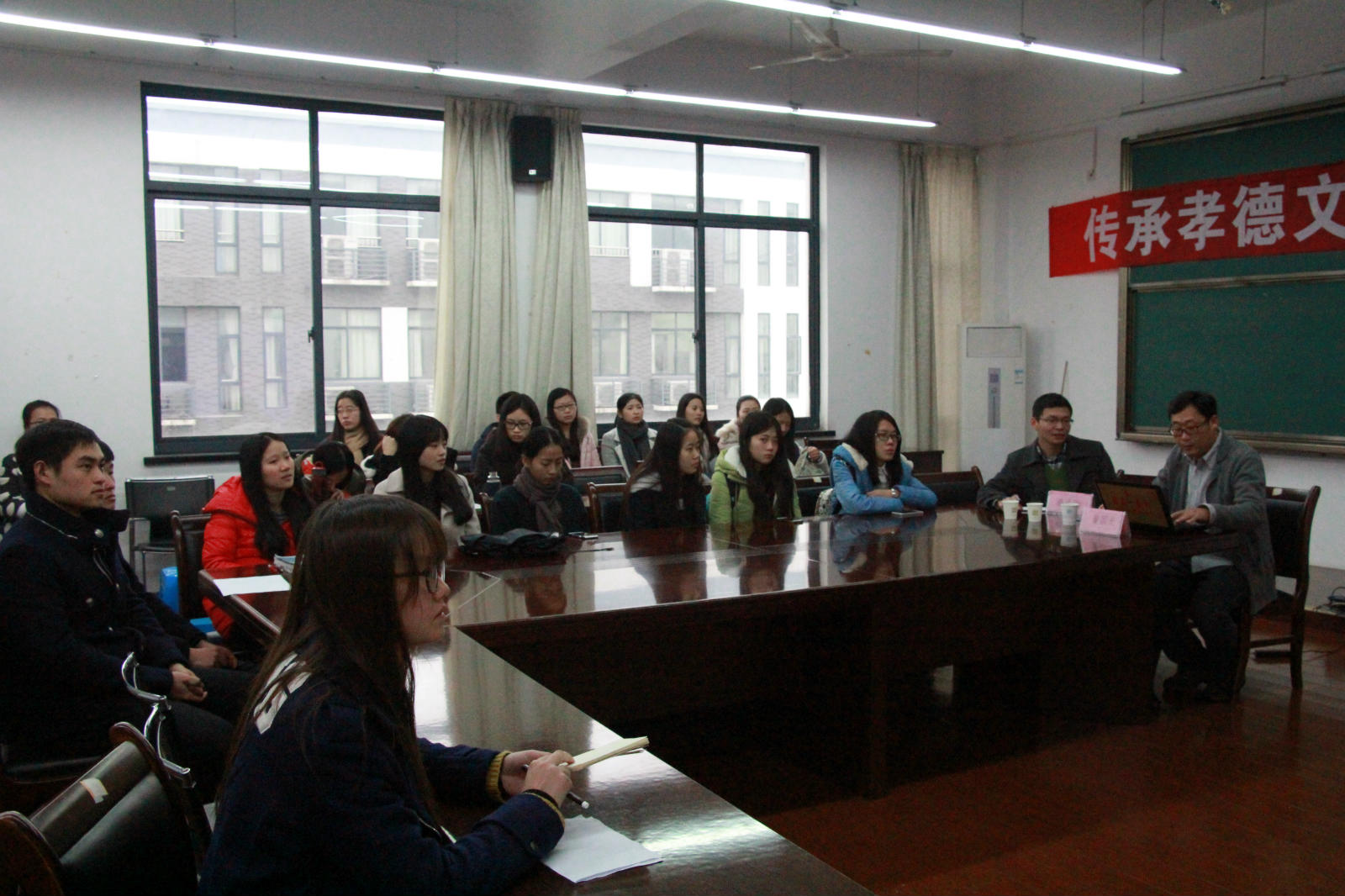 12月10日下午3:00,绍兴市“点亮一盏灯”民间慈善活动创始人董国光先生在人文楼406会议室开展了一场主题为“传承孝德精神,创新道德教育”的讲座。讲座由人文系书记潘成刚老师主持,聆听讲座的还有我系部分预备党员。会议伊始,潘书记介绍道:董国光先生是一名下岗了15年的电工,经济条件一般。在2009年冬天帮一位孤寡老人装了一盏灯后,不经意中走上了民间慈善的道路,并被大家称为“平民英雄”。在大家对董先生有了初步的了解后,董先生向大家播放了一个名为“最美浙江人之——董国光”的视频,通过这个视频,大家对董先生有了进一步的了解:2009年,他创建了“点亮一盏灯”志愿者服务总队,致力于扶贫结对、关爱他人、奉献社会。他曾获得上虞区道德模范、绍兴市道德模范、浙江省道德模范、浙江省慈善奖(志愿服务奖)、中华广大信义人物等荣誉和称号。董先生告诉大家,迄今为止,“点亮一盏灯”在省内外组织发起了850多次的爱心活动,受益家庭4000多户,以每月资助生活费的方式结对了学生280多名,募集善款达到750多万元,已成为浙江省知名民间爱心活动品牌。另外,他也真诚地告诉大家:如果看到身边有处境困难的同学,可以随时与他联系,并留下了手机号码等联系方式;同时,他也诚挚地号召大家加入到“点亮一盏灯”活动,向他人奉献自己的爱心。