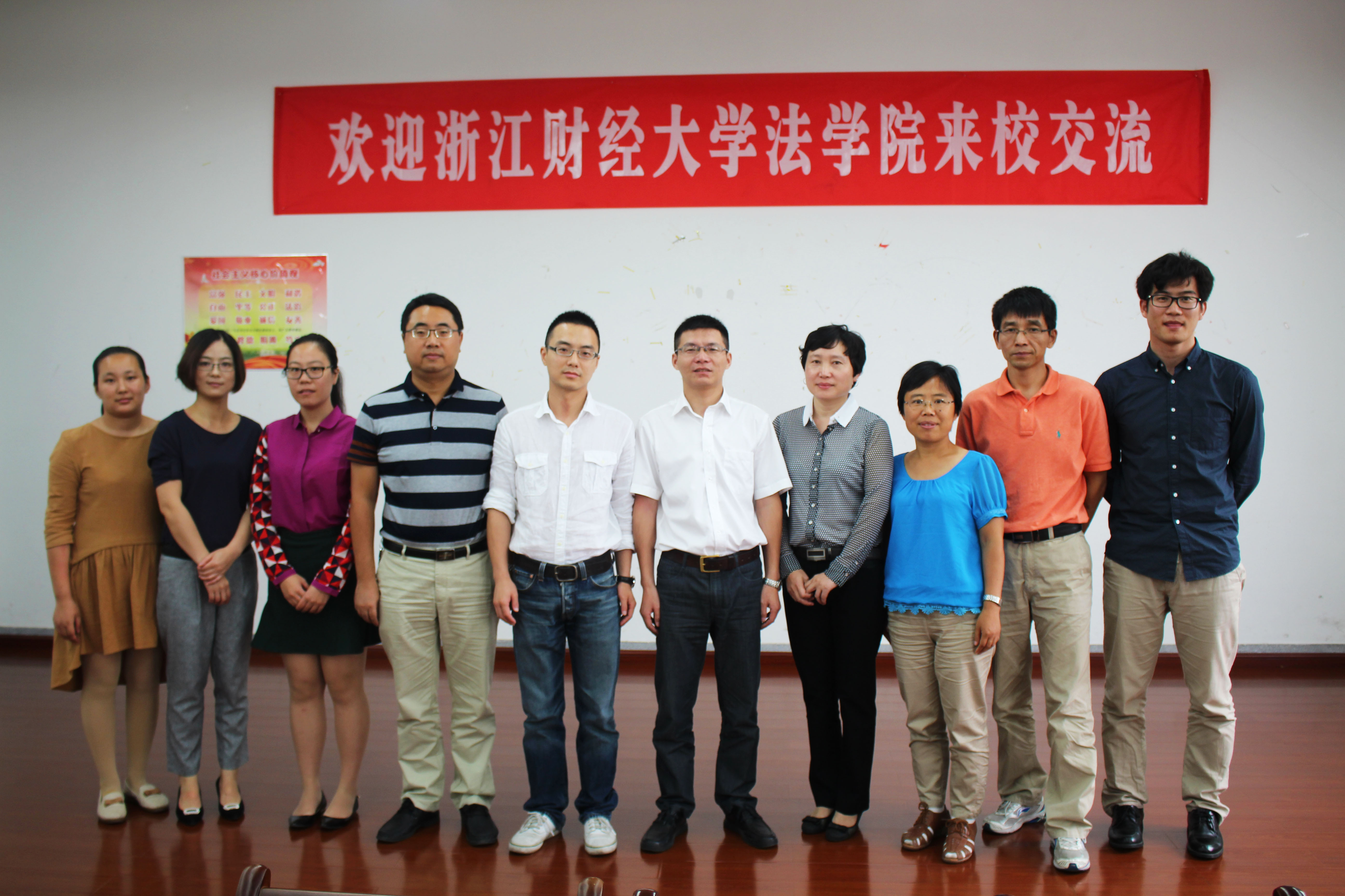 9月20日下午,浙江财经大学法学院党总支副书记罗金艳一行4人来我系交流,我系党总支书记潘成刚、法学教研室主任陈金东老师等出席交流会。