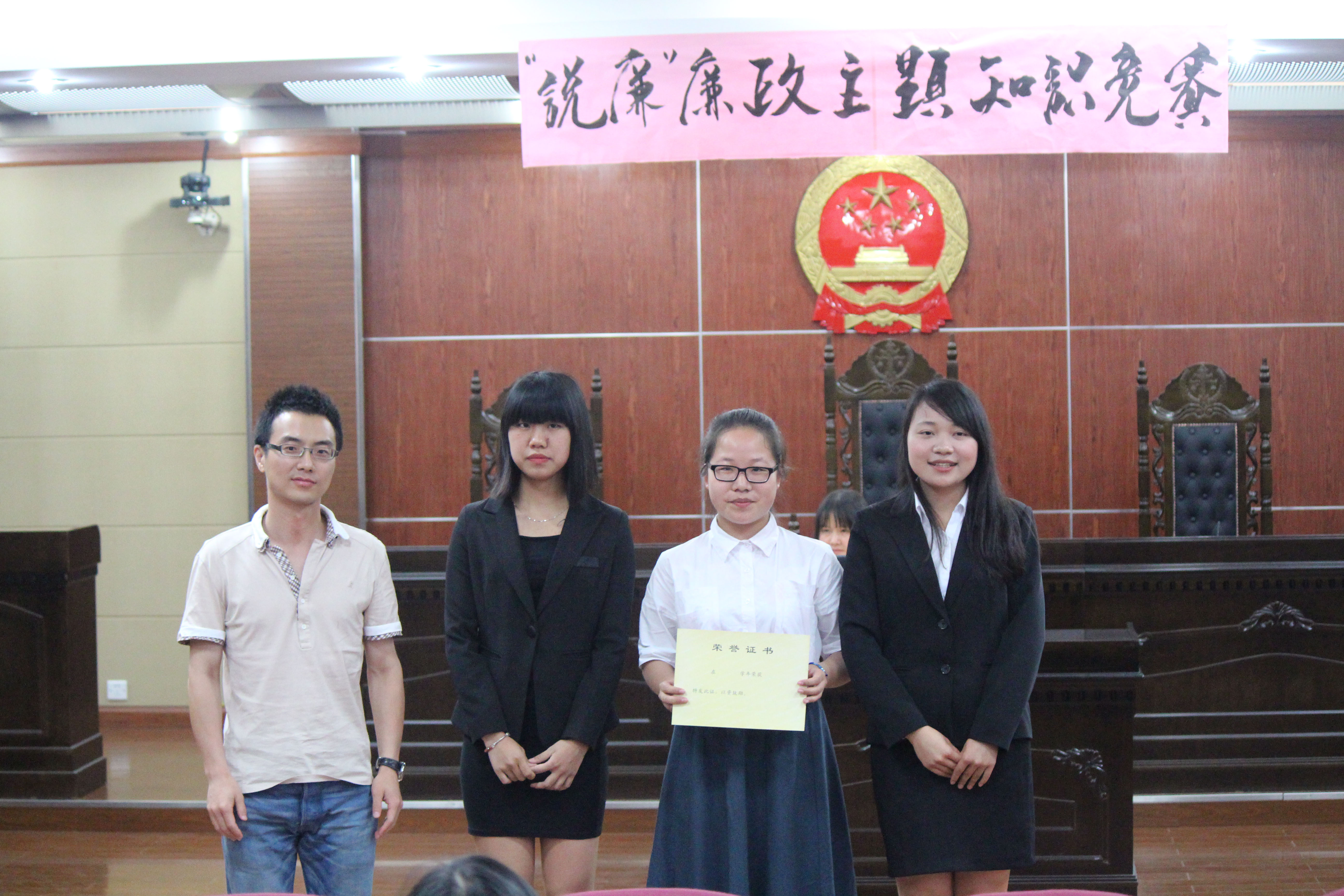 6月2日14:00,由我系党员自我管理委员会信息部和宣传部共同承办的“说廉”廉政知识竞赛在镜湖校区人文楼207模拟法庭拉开了帷幕。绍兴文理学院元培学院党办院办副主任金超老师、人文科学系党支部书记潘成刚老师、系辅导员许婷婷老师担任了本次比赛的评委。