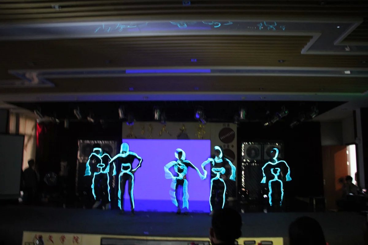 比赛的第一环节是开场秀。我系选手以创意非凡的影子舞跃动在舞台上,帷幕后,动静变换间演绎着现今晚激烈的夺麦比赛,随着帷幕落下,全场灯灭如黑夜,静若无人,一阵意料之外的荧光机械舞进入观众视野,神秘和动感间,博得满堂喝彩。而之江与越秀选手带来的歌曲演唱亦获得了一致好评。