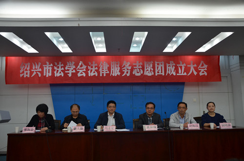 为深入贯彻党的十八届四中全会依法治国的精神,绍兴市法学会分别与绍兴文理学院法学院和绍兴文理学院元培学院联合成立法律服务志愿团,并于4月22日在文理学院举办了成立大会和授牌仪式。绍兴市政法委副书记、市法学会常务副会长马永定,绍兴市综治办副主任戴大新,绍兴市法学会秘书长潘海浪,元培学院党委副书记宣海江,法学院党总支书记陈林刚以及两个学院的师生代表共100余人出席了大会。