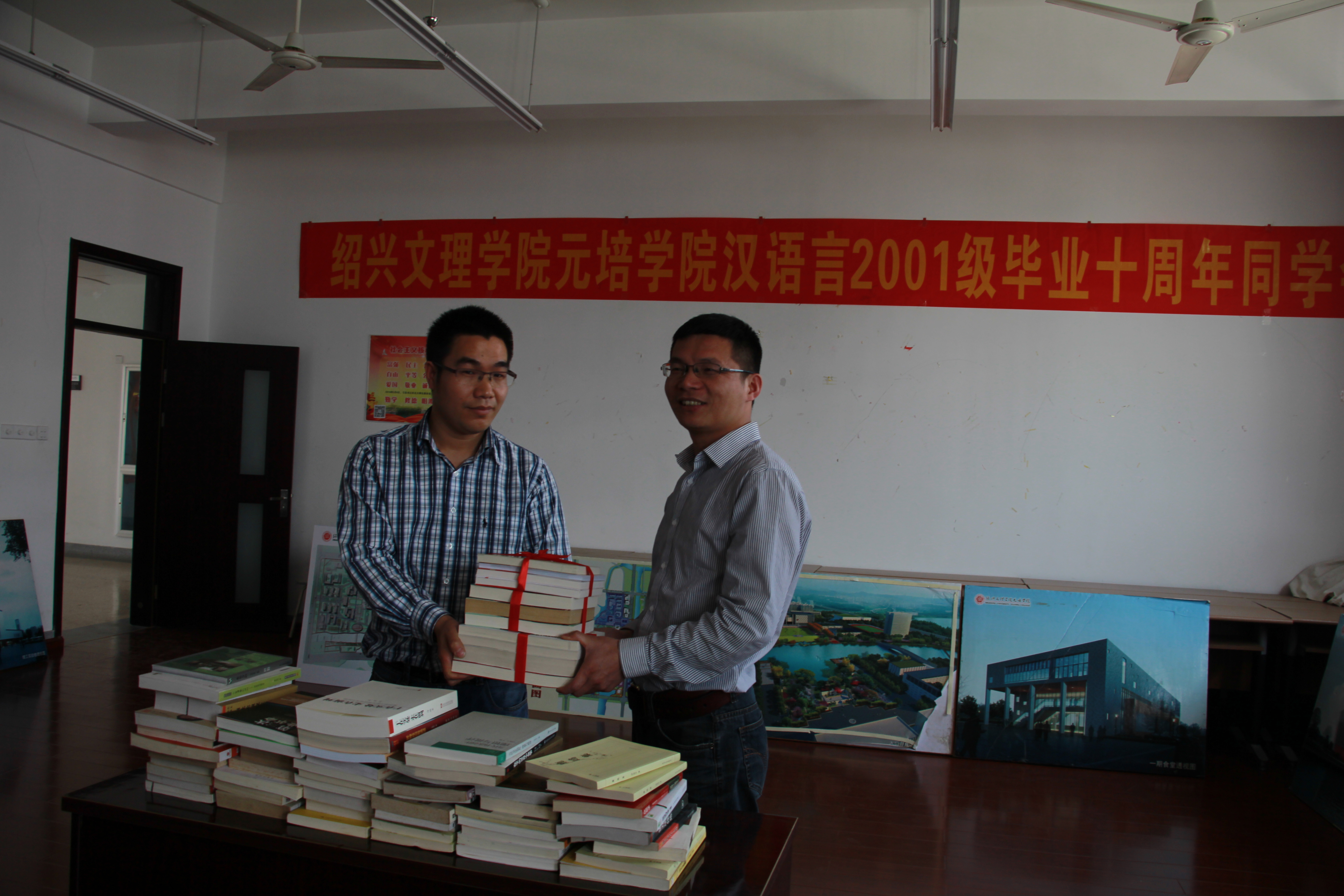 一别十年如远景,风雨难阻团聚心;今朝母校喜相逢,镜湖印证同窗情。4月25日上午,元培学院人文楼406会议室内一片欢声笑语,我院第二届本科2001级汉语言专业校友毕业十年后重回母校欢聚一堂,在学院会议室内举行了同学会。人文科学系党总支书记潘成刚老师、辅导员许婷婷也参加了本次同学会,潘书记代表学院热烈欢迎各位校友回母校来看看,同时向大家介绍了元培学院近十年来的快速发展和喜人变化,希望广大校友继续关注和支持母校的建设。同学会上,汉语言01级校友胡祖平还向学院捐献了两百多本书,希望学弟学妹们能秉承人文系的优良学风,增加自身的文化底蕴。