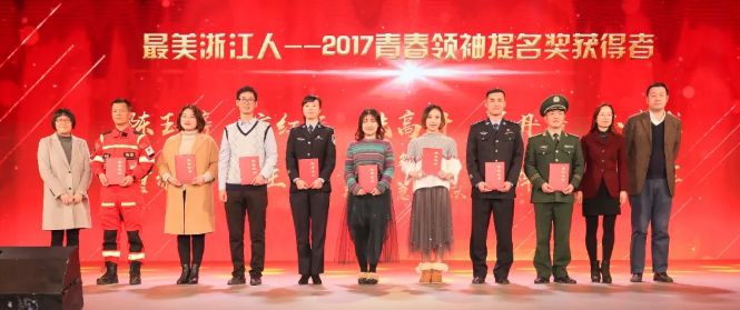 (“最美浙江人——2017青春领袖提名奖获得者”合影)