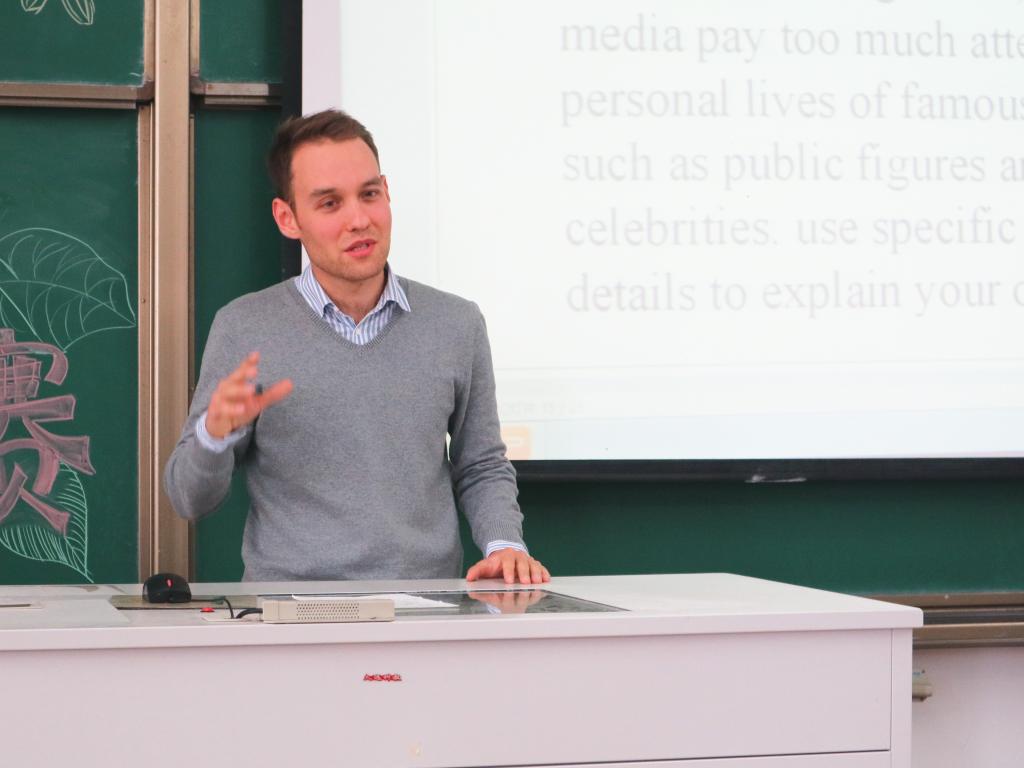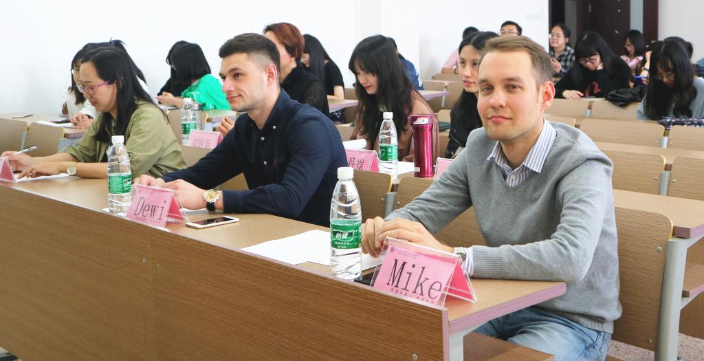 此次比赛分为两个部分:第一部分要求选手根据比赛规定的话题进行脱稿演讲,限时两分钟,第二部分由选手随机抽取话题,对话题发表自己的看法,即兴发挥。首先是来自翻译1601的王晨霞,作为第一位出场的选手,难免有一丝压力,好在她能很快的调整好自己的状态,发挥的还是相当顺利,在面对临时给出的随机话题进行发言时,也镇定从容,为比赛开了一个好头。令人印象深刻的是来自电信1601的15号选手李子强,他响亮的声音,配合大幅度的肢体语言,为原本严肃沉寂的比赛氛围增添了一丝生气和活力。比赛过程中,也有选手因为紧张而忘词,然而她们还是克服了心理上的压力以及种种困难,打了这一场“战役”。在场的评委们也非常耐心,认真倾听每一位选手的演讲,并用笑容和点头的方式来鼓励选手。最后,Mike和Dewi老师对本次的比赛以及各位选手的表现进行总结和评价。