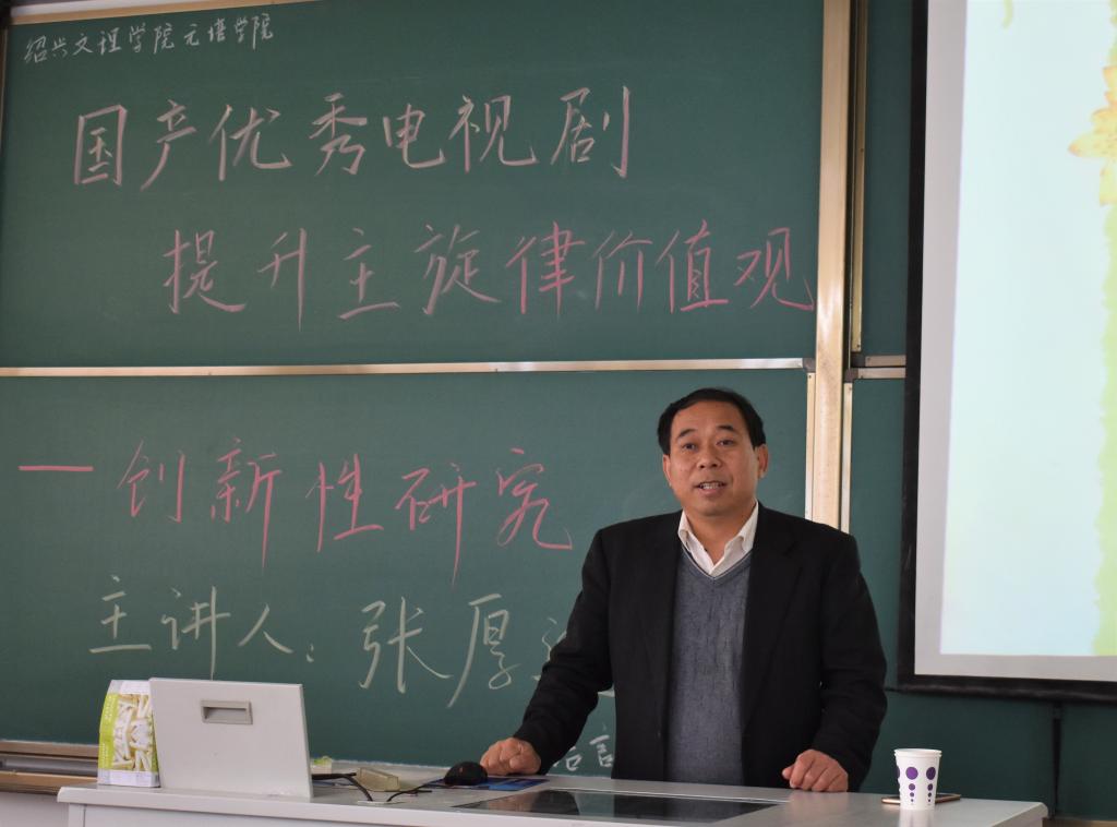 主旋律影视剧作为重要的文化产品之一,如何有效地传递社会主义核心价值观,既让观众认可喜爱,又能成为有效的宣传载体,一直是电视剧创作者们不断探寻的问题。4月18日上午语言文学分院举行了一场由现任中国网络传播学会理事、绍兴市网络舆情研究中心执行主任、湖北省网络社会发展研究中心副主任、浙江越秀外国语学院网络传播学院副院长张厚远教授主讲的《国产优秀电视剧 提升主旋律价值观的创新性研究》讲座。语言文学分院的学子们参加了此次讲座。