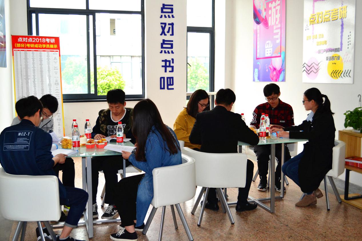 2018年4月23日,正逢“世界读书日”,语言文学分院携手点对点教育,于四号楼二楼正式设立了“点对点考研书吧”,为元培考研学子提供丰富的考研书籍及专业学术期刊。书吧的建立,给元培考研学子提供了课间休息、阅读休闲的场所,在书吧里,学生们可以聚在一起,一同在这个光线充足、环境清幽的地方学习、交流。语言文学分院秉承“一切为了学生,为了学生一切,为了一切学生”的服务理念,为有意向考研、留学的学生提供了便捷的服务,能够帮助他们更好的了解考研、留学的形势,进一步提升考研学习氛围。