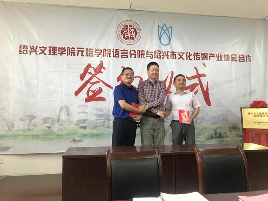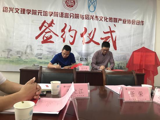 为帮助毕业生更好地择业、就业,进一步做好毕业生就业工作,今日上午9:30,由绍兴文理学院元培学院语言文学分院、绍兴市文化传媒产业协会联合召开签约仪式会议。在学院领导、老师、学生、协会领导班子的见证下,正式签订合作协议,并揭牌仪式!