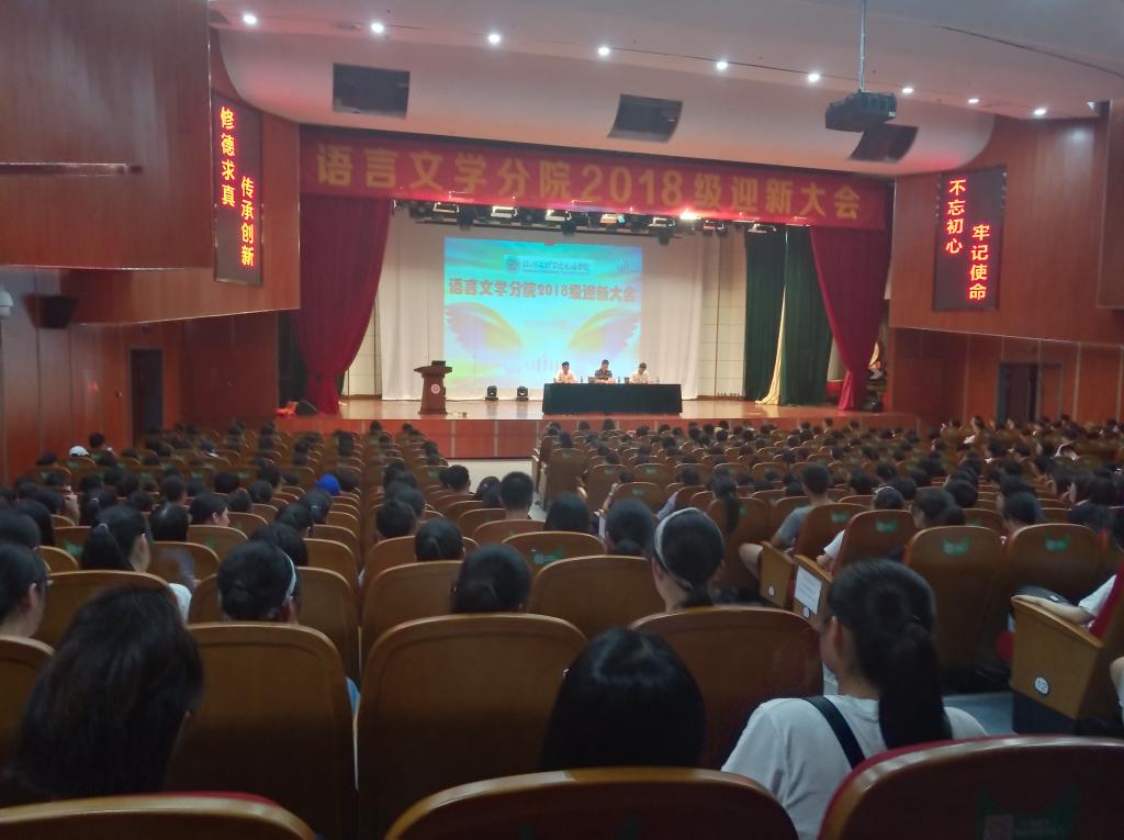 9月6日晚18时,语言文学分院2018级迎新大会在我院国际交流中心报告厅举行。语言文学分院负责人、各教研室主任、2018级各班主任、2018级全体学生及部分家长代表参加大会。