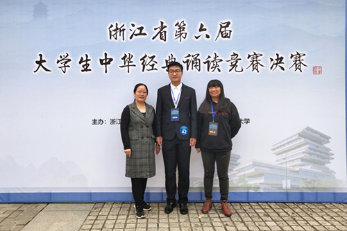 近日,浙江省第六届大学生中华经典诵读竞赛决赛在杭州师范大学仓前校区落下帷幕。全省共74所高校的172名选手参与角逐。我院汉语言1603班林雨蒙、中语1701班王嘉楠、汉语言1603班蒋璐婷获省二等奖,汉语言1603班林瑶获省三等奖。