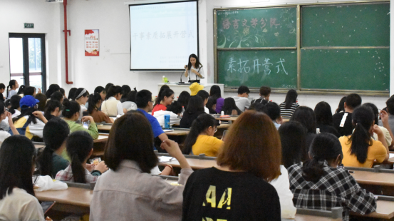 9月25日至10月8日,语言文学分院团总支学生会干事素质拓展训练营圆满结束。开幕式上由语言文学分院团总支书记许婷婷老师进行讲话,她以南航徐川的《要不要加入学生组织?》为例,详细讲解了新生们是否应该加入学生组织,并从人际关系,组织协调能力,增长经验三个方面为新晋干部提出建议。学生会主席刘媛媛则以个人经历强调了团结,责任,学习三大学生会工作原则。以”做人要低调,做事要高调”的座右铭与学弟学妹们共勉。最后,学生会干部新闻中心主任阮亚妮和文娱部副部郭强分别上台分享自己的经验与感受,为新一届干事指引了前进的方向。