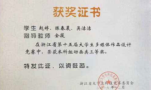 陈春晨:视觉传达设计1502班学生,学习成绩优异,曾获第十五届浙江省大学生多媒体作品设计竞赛三等奖、浙江省第八届大学生广告设计竞赛优秀奖、绍兴市第十届大学生多媒体作品设计竞赛二等奖。
