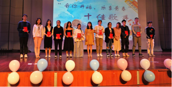 最后,各位评委共同为本届十佳歌手颁奖,并与选手们一同合影留念。至此,本次十佳歌手大赛画上了完美的句号。本次活动丰富了同学们的文化生活,挖掘了一部分文艺人才,充实了校园文化氛围,为全体同学提供了一个展示自我的舞台。