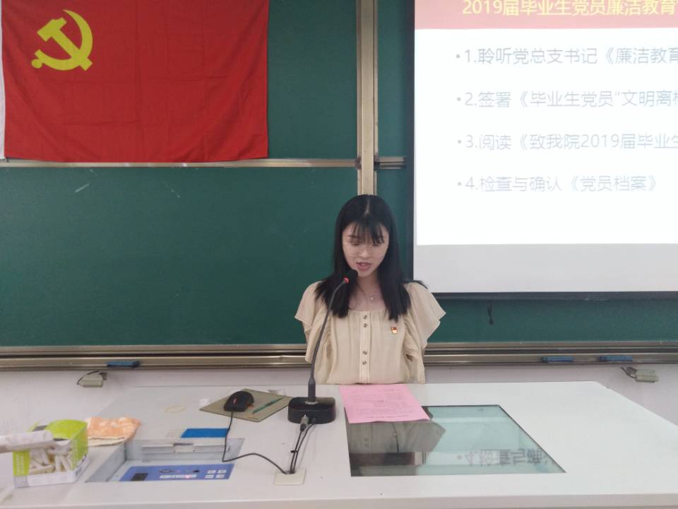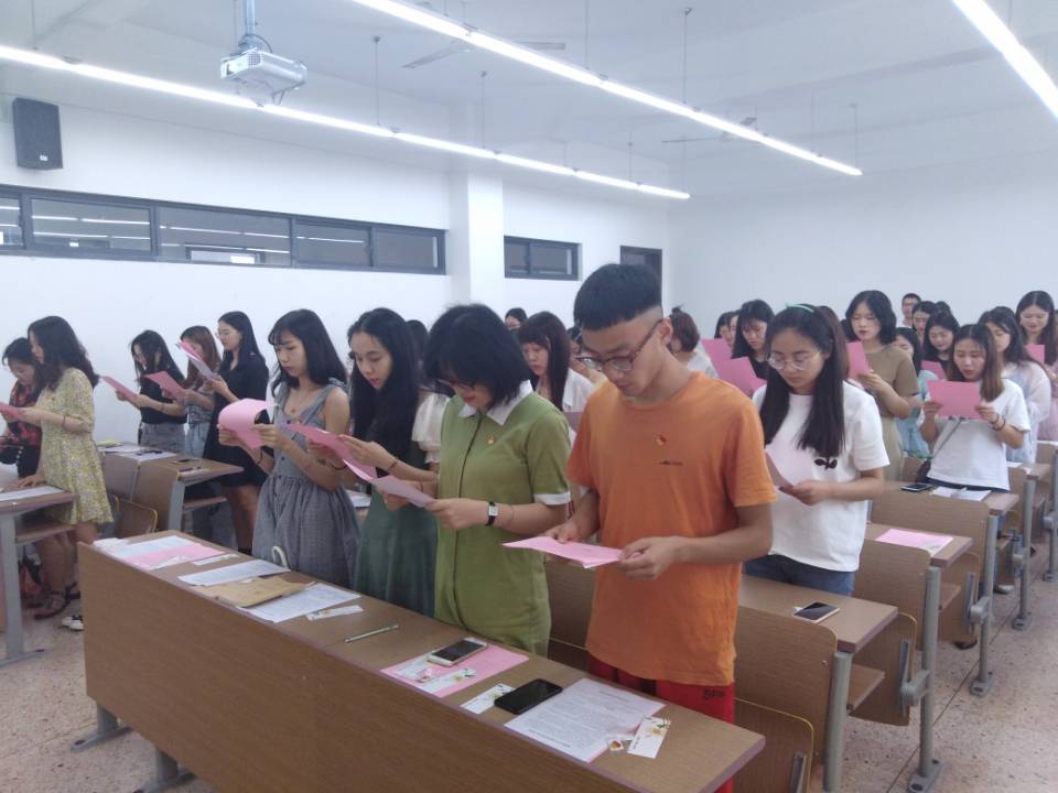 会议的最后,潘成刚书记和毛巧老师动员各班党员积极向上,鼓舞人心,并由叶晶晶同学作为党员代表带领大家宣誓并签署倡议书。相信经过本次动员大会,毕业生的党员意识被唤醒,时光不老我们亦不散,让党性的关辉永远照耀你我的胸膛之中,紧跟党的步伐向前进!