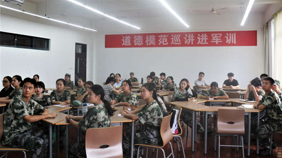 据悉,此次道德模范巡讲进军训活动,意在强调注重志愿服务的公民意识与公共精神,并借此提高学生的社会责任感。语言文学分院坚持“塑形”与“塑魂”相结合,注重融入爱党、爱国、爱军教育内容,训家国情怀、训道德品质、训责任担当,发挥学生军训思想道德教育功能。