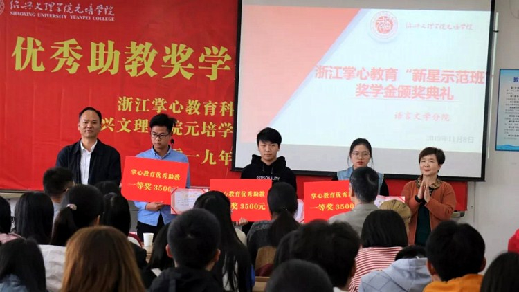11月8日,学院举行浙江掌心教育“优秀助教”奖学金颁奖典礼。学院党委副书记石旭明和浙江掌心教育科技有限公司创始人李红蓉出席。语言文学分院相关负责人及分院2019级新生参加活动。