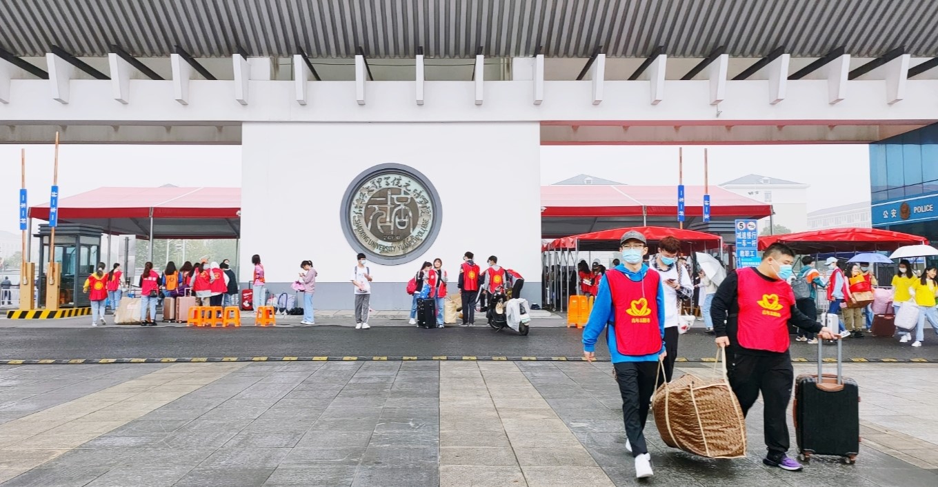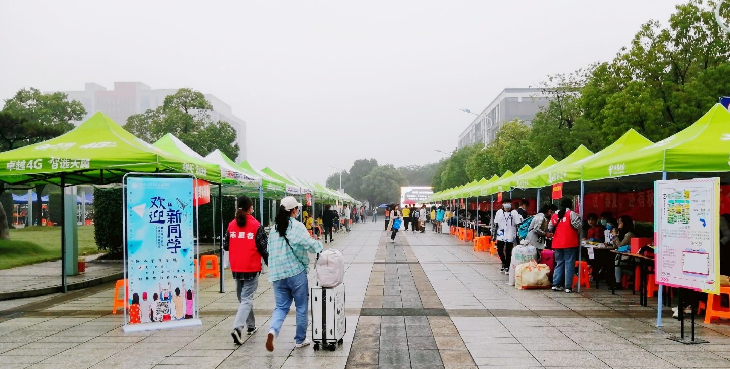 活动伊始,新生成功扫描门口健康二维码后,在志愿者的指引下,来到自己班级的帐篷。领取完相应的材料后,新生坐上学校安排的行李摆渡车。在摆渡车前进的过程中,公寓楼下迎面站满了志愿者,热情似火地奔向手提行李的新生。志愿者一边向新生介绍公寓设施,一边询问新生专业情况。接着,朦胧的天空夹杂着雨滴,却抵挡不住新生的朝气蓬勃和老生的热情洋溢——新生们因开始新的生活而惊喜,老生们因能给新生帮忙而满足。在公寓楼下,志愿者们各司其职:有的在为新生搬运行李;有的在为新生指路;还有的在为新生解答问题、办理入学的相关事宜。一切都在有条不紊的进行着。