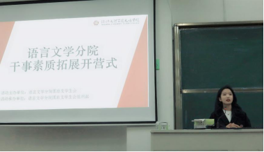 10月11日晚上6点30分,语言文学分院团总支学生会干事素质拓展训练营在教学楼1-310正式开营。语言文学分院团总支副书记孟燕超、副书记卢榆涵以及执行主席毛灵欣、李晨、王舒佩出席了此次开营式。本次活动由团总支副书记卢榆涵主持,语言文学分院团总支学生会各部门干事参加了开营式。